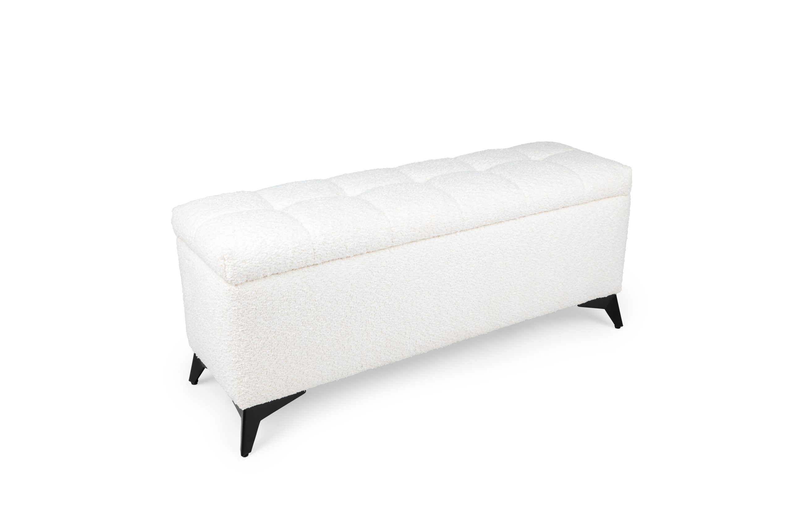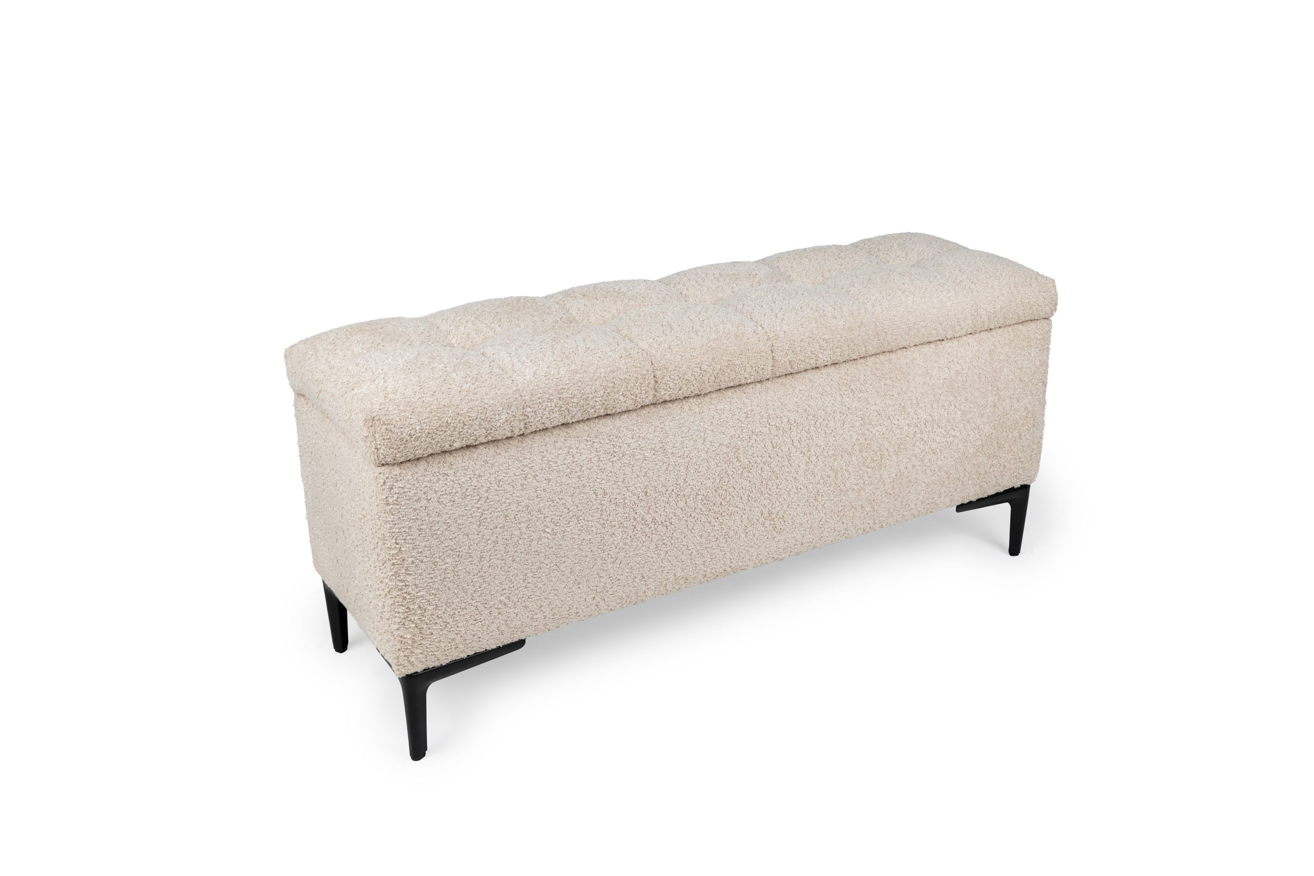 Tapicerowana ławka z bukli z pojemnikiem – design, funkcjonalność i komfort w jednym