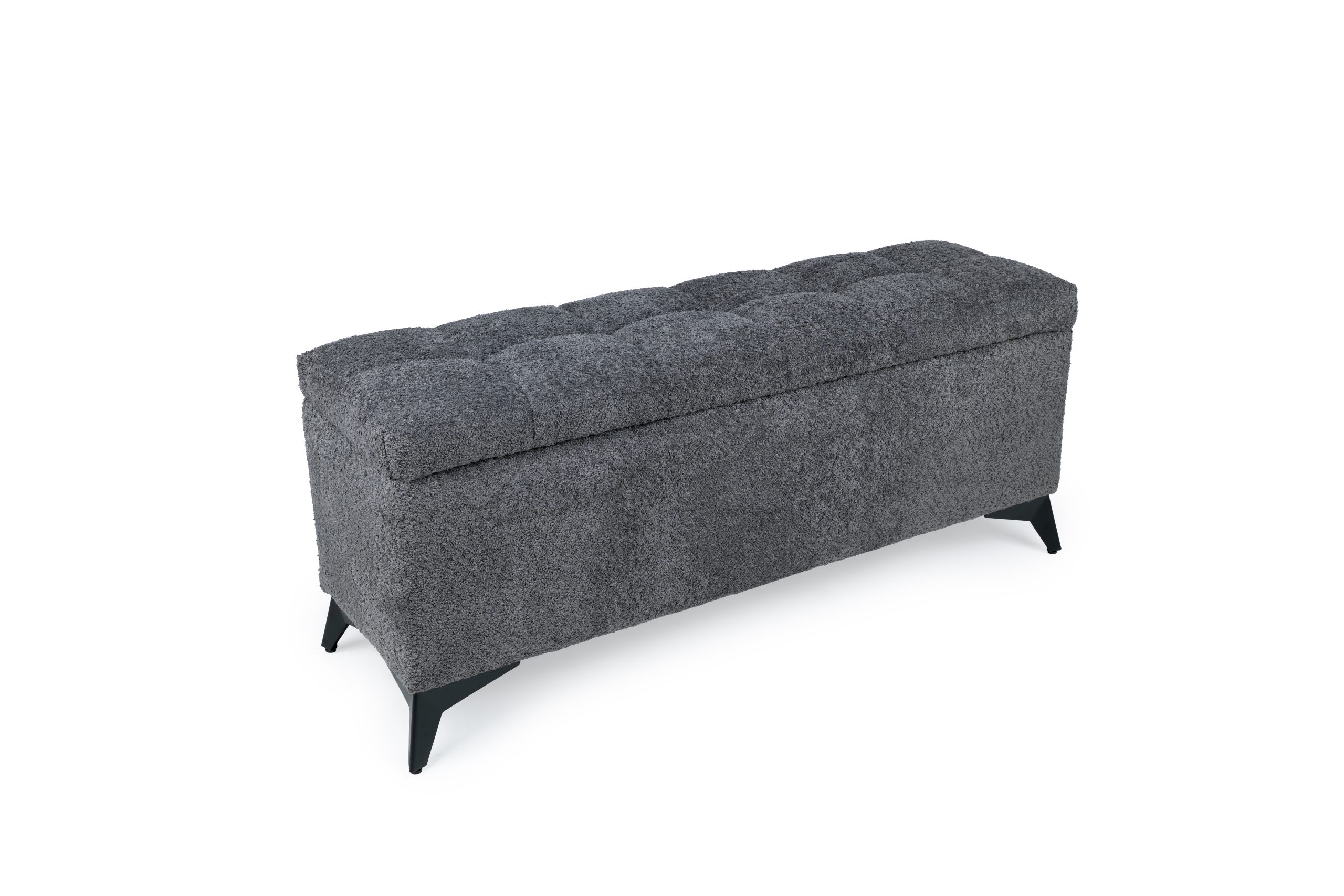 Duży schowek pod siedziskiem to świetne miejsce do przechowywania rzeczy, które chcesz mieć pod ręką, ale nie na widoku. Sprawdzi się do przechowywania tekstyliów, butów, zabawek czy drobnych akcesoriów. Wnętrze wykończone ciemną tkaniną prezentuje się estetycznie i jednocześnie ułatwia zachowanie porządku.