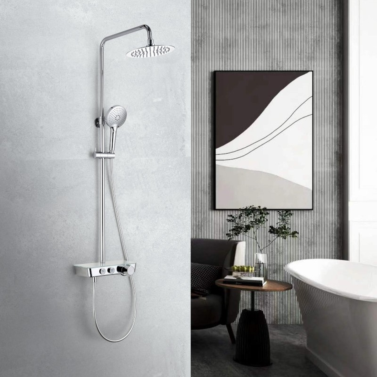 Zestaw Prysznicowy Termostatyczny z Deszczownicą i Szklaną Półką Chrom Cetus Cubic
