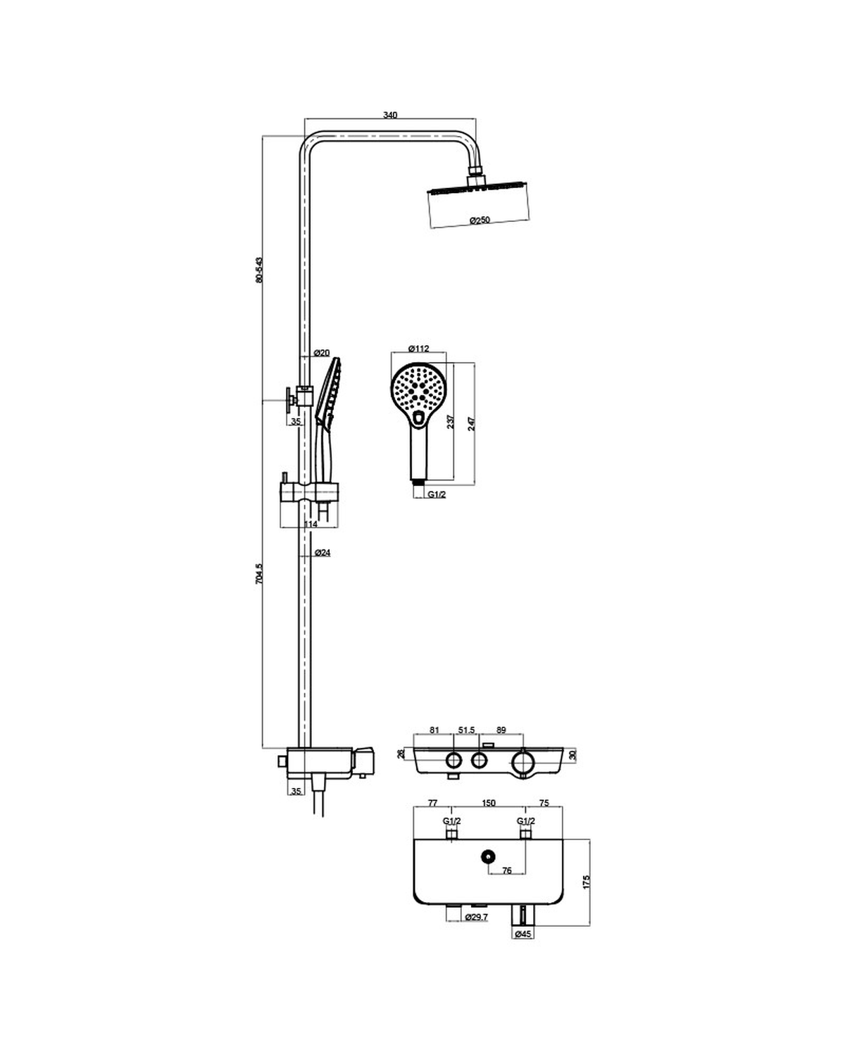 Specyfikacja zestaw prysznicowy termostatyczny Cetus: